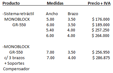 SISTEMA RETRACTIL MONOBLOCK GR-550